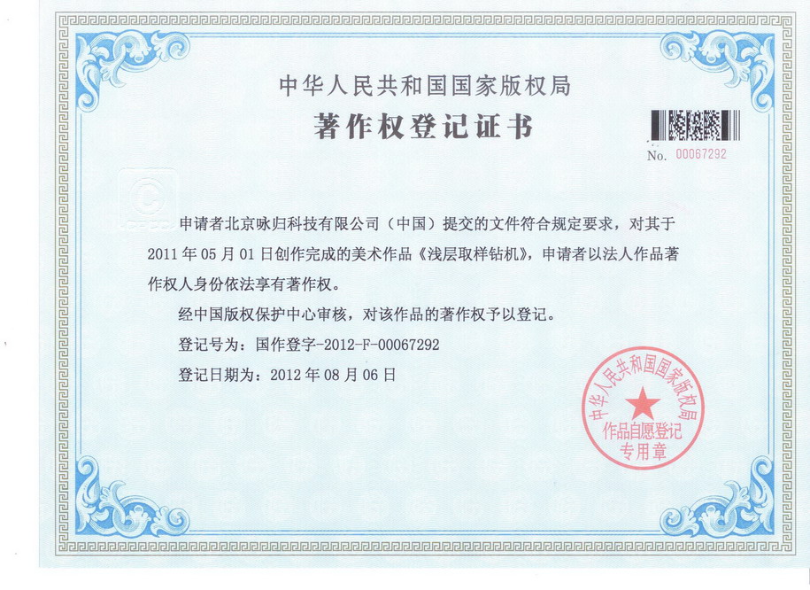 著作權(quán)登記證書--淺層取樣鉆機(jī)
