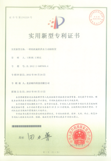 實用新型專利證書--一種鉆機(jī)旋轉(zhuǎn)...