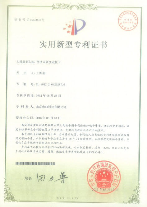 著作權(quán)登記證書--便攜式背包鉆機(jī)