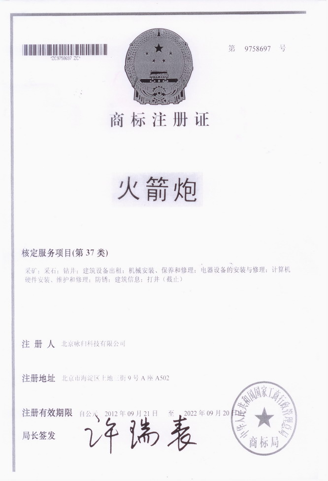 商標(biāo)注冊(cè)--火箭炮(第37類)
