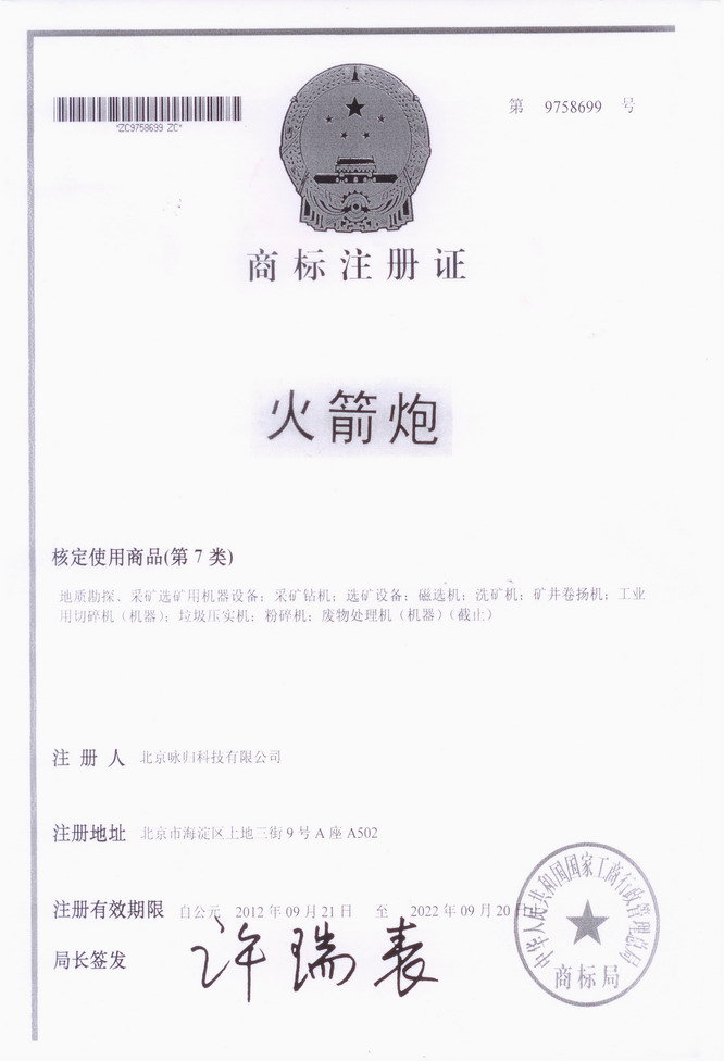 商標(biāo)注冊(cè)--火箭炮(第7類)