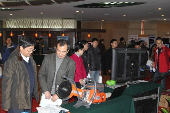 客戶在詠歸展位前,討論維基鉆機的應(yīng)用